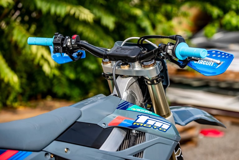For 2026, TM Moto has released a new Enduro Race-Focused Corse version, along with a Standard version in dark grey, black and white colours, along with the eye-catching Pink Edition continues which continues for 2026.